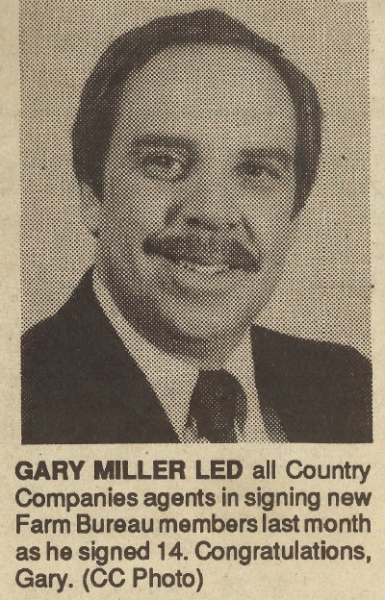 An MCFB newspaper clipping from the early 1990s notes Spring Grove native Gary Miller’s work for COUNTRY Financial and Farm Bureau. “Some of the best and worst times when you lose somebody, and you have the money to sit at the table and widow’s and kids start crying,” said Miller about some of the high and low times during his career. “They had no idea that dad had life insurance. (I had) a bunch of them.”