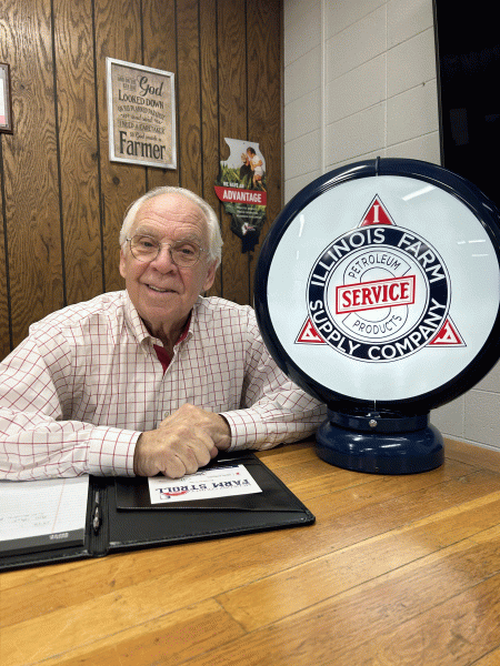 Gary Miller, former COUNTRY Financial representative based in McHenry, shows off his special antique FS fuel pump topper turned lamp. Miller’s father, Daniel J. Miller of Spring Grove, served 38 years with FS, and Gary Miller served 40 years for COUNTRY, both Illinois Farm Bureau affiliated companies.