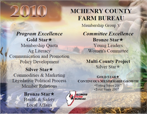 We just got our 2009-10 program awards from Illinois Farm Bureau... It was another great year! We would like to thank our Volunteers, Committee Members and our Board of Directors for all their efforts.